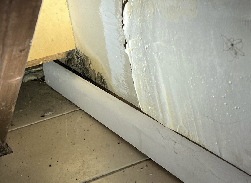 Firstly, we can see copper pipes that have decayed. These pipes need replacing urgently. At some point, they will not be able to hold the water pressure and water will burst out into the home causing major damage. A plumber will need to be called in to asses the extent of the decay and replace the affected pipes, potentially saving a lot of money by avoiding flooding.